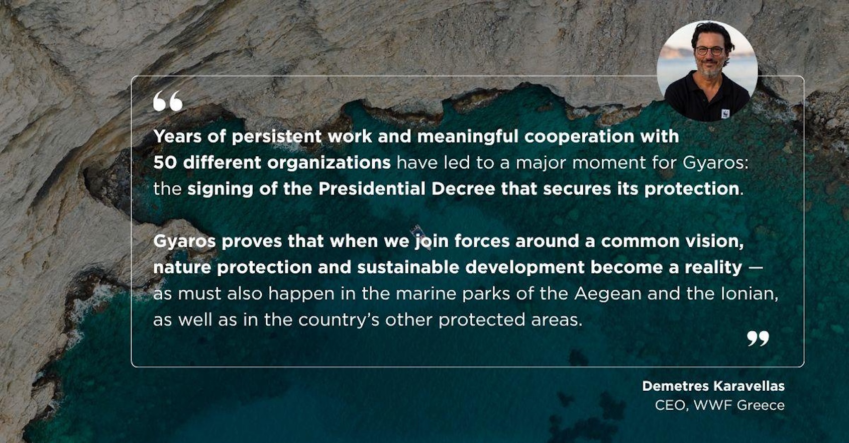 This week, a major step forward was achieved with the signing of a presidential decree officially placing the marine area around Gyaros under full protection. This outcome is the result of years of dedicated scientific research, advocacy, and close collaboration between institutions, researchers, environmental organisations, and local stakeholders.